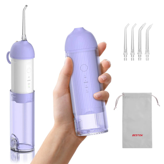 BESTEK Water Dental Flosser Teeth Pick: Cordless Portable Oral Irrigator with 4 Jet Tips Rechargeable IPX7 Waterproof Water Flosser for Teeth Gums Braces Care and Travel - Violet