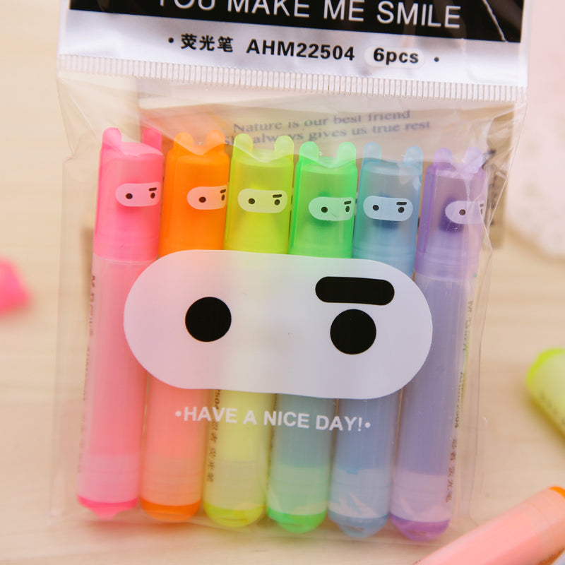 6PCS/Set Rabbit Mini Fluorescent Highlighter Pen Kawaii Chalk Marker Pens Stationery Material Escolar Papelaria School Supplie