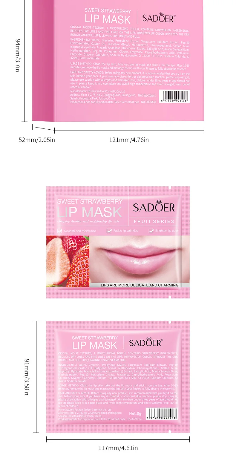 SADOER Fruits Moisturizing Lip Mask Lips Skin Care Nourishing Hydrating Crystal Collagen Gel Lip Patches Lips Plumper