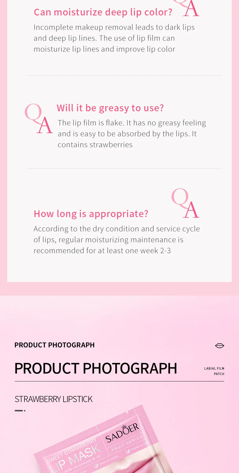 4.You can use the lip mask every day at begin,but please use the lip mask twice or three time within one week after lip gradually restore full of abundance.